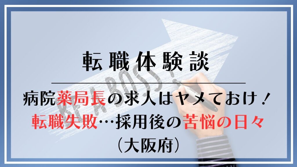 薬剤師転職失敗!【病院薬局長に採用されるも苦悩の日々】大阪府