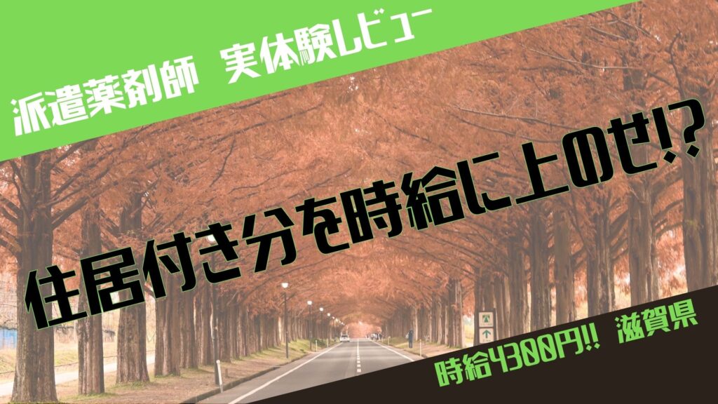 高額薬剤師派遣体験談【住居付き分を時給に上のせ!?】時給4300円・滋賀県