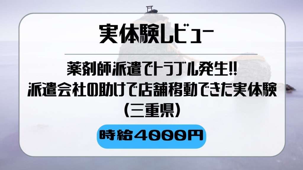 薬剤師派遣でトラブル!事務ともめて店舗移動をした実体験【時給4000円】三重県